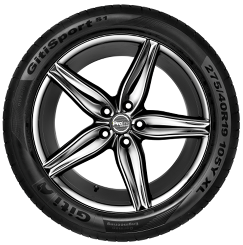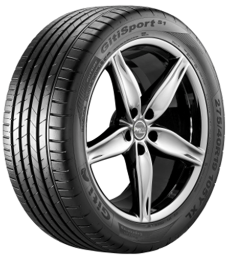 GitiSport S1 SUV je športová UHP pneumatika navrhnutá pre dynamickú jazdu a vysoký výkon. Zameriava sa na maximálnu priľnavosť, presné riadenie a krátke brzdné dráhy, najmä na mokrej vozovke. Špeciálna zmes behúňa s elastomérmi zabezpečuje mimoriadny brzdný výkon a odolnosť proti opotrebovaniu. Vysoký podiel siliky znižuje energetické straty, zatiaľ čo tuhé ramená zabezpečujú stabilitu a nízku hlučnosť. Štyri široké drážky pre účinný odvod vody zvyšujú kontrolu za daždivých podmienok.
